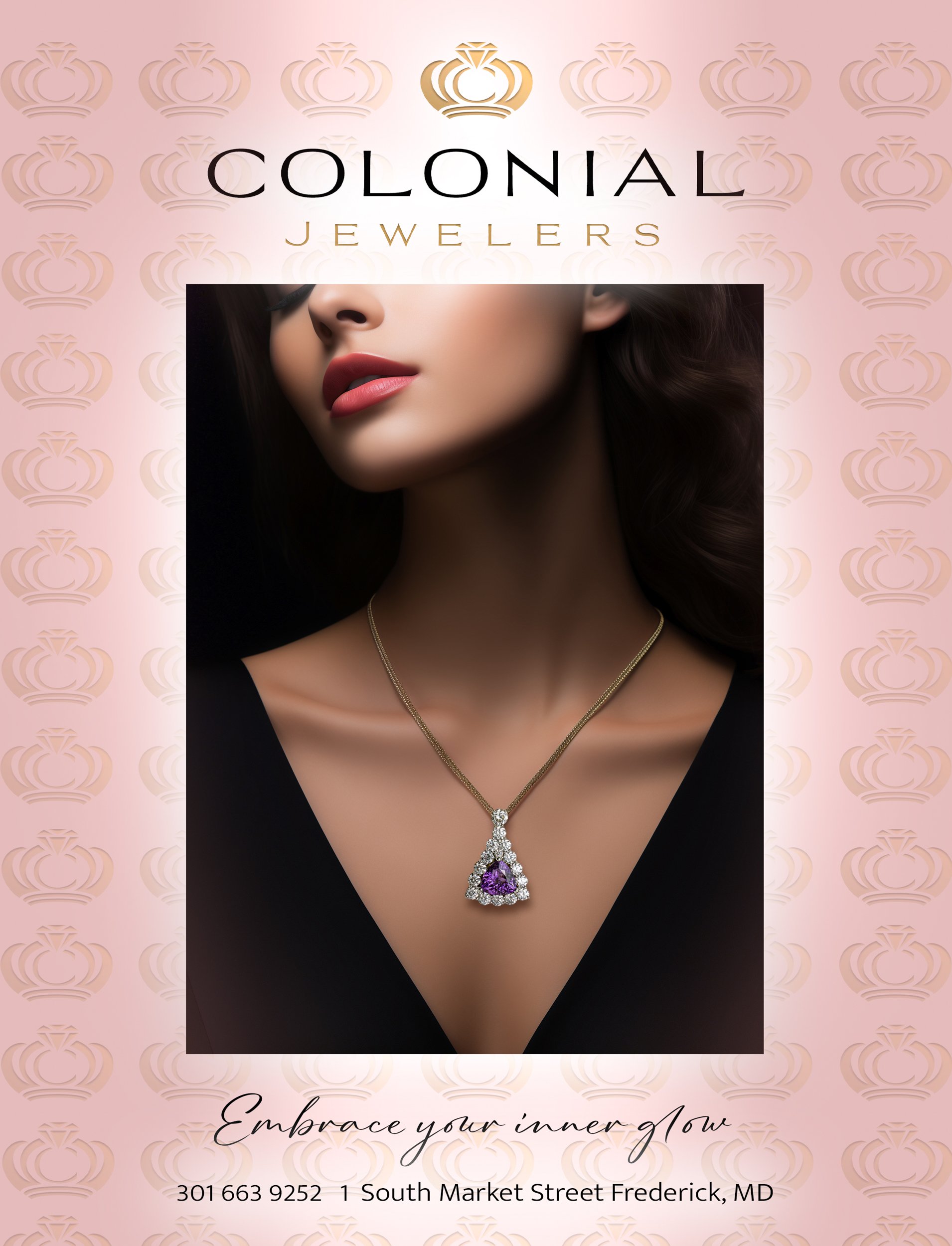 I have created 12 Colonial print ad mockups for your consideration. The first 4 are presented below. In each case, I have created a composition with an original background and tagline created expressly for Colonial, and have inserted jewelry from my portfolio to complete the look. (If we were to move forward, I would of course photograph Colonial jewelry for use in the ad.)